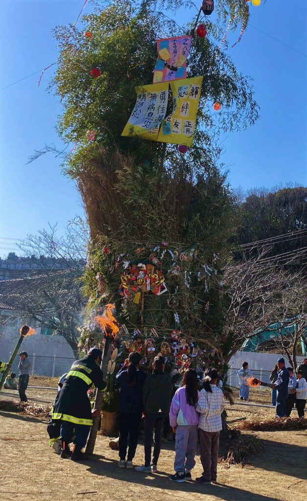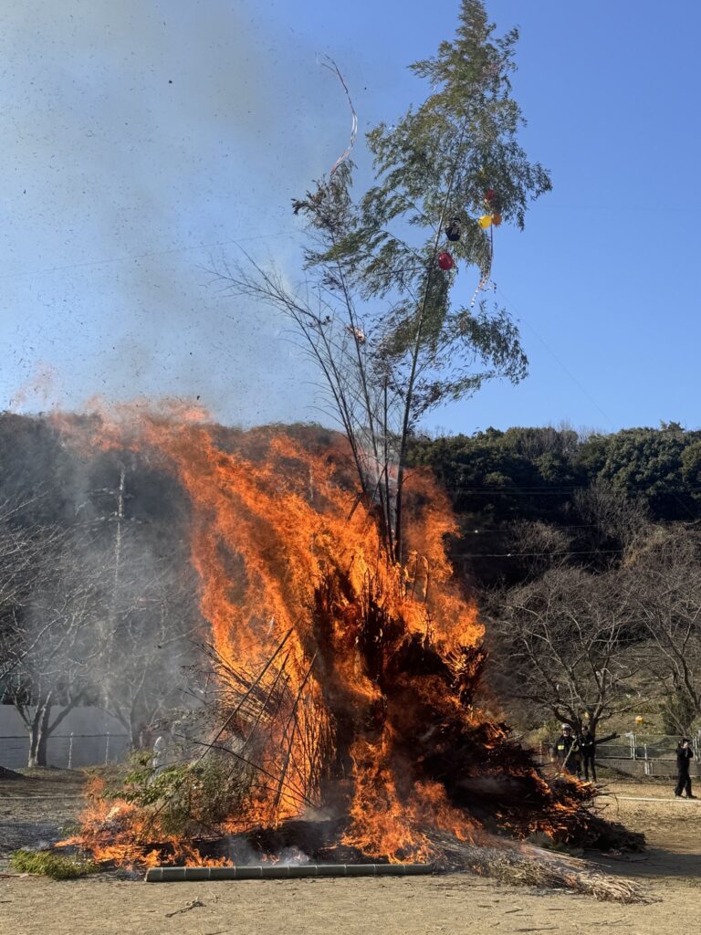 1月18日、葉山町木古庭の木古庭公園にて、一年の無病息災や五穀豊穣を願う伝統行事「どんど焼き」が行われました。