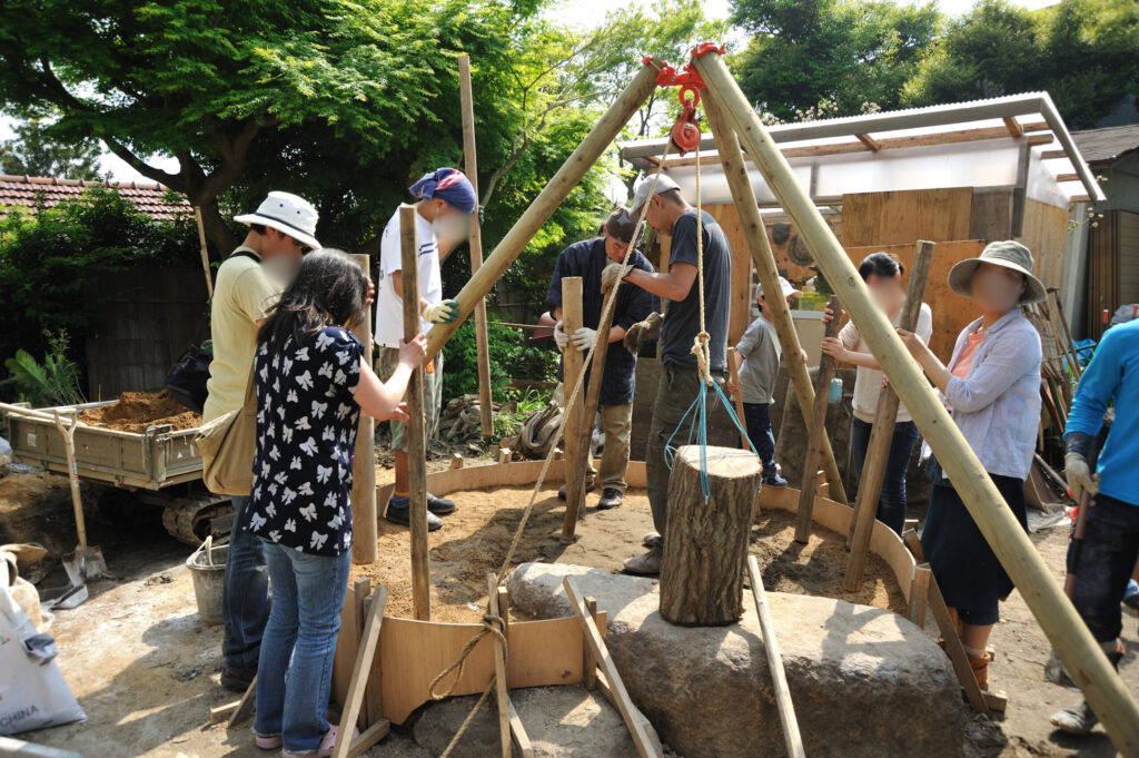 版築によるかまどは、雨風にも強く、直火による調理が可能。ご飯を炊くだけでなく、餅つきや芋煮、ピザやパンの焼成など楽しみ方は多彩です。火を囲みながら、気の置けない仲間たちと語らう時間は、日常の中にゆったりとした癒しをもたらします。