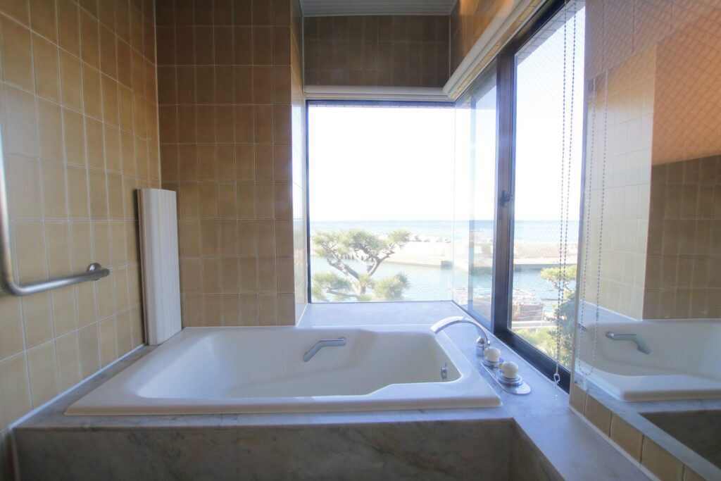 浴室は海を望む大きな開口部という魅力を備えながらも、タイルや設備に年代感があり、空間全体を一新したいというご要望でした。