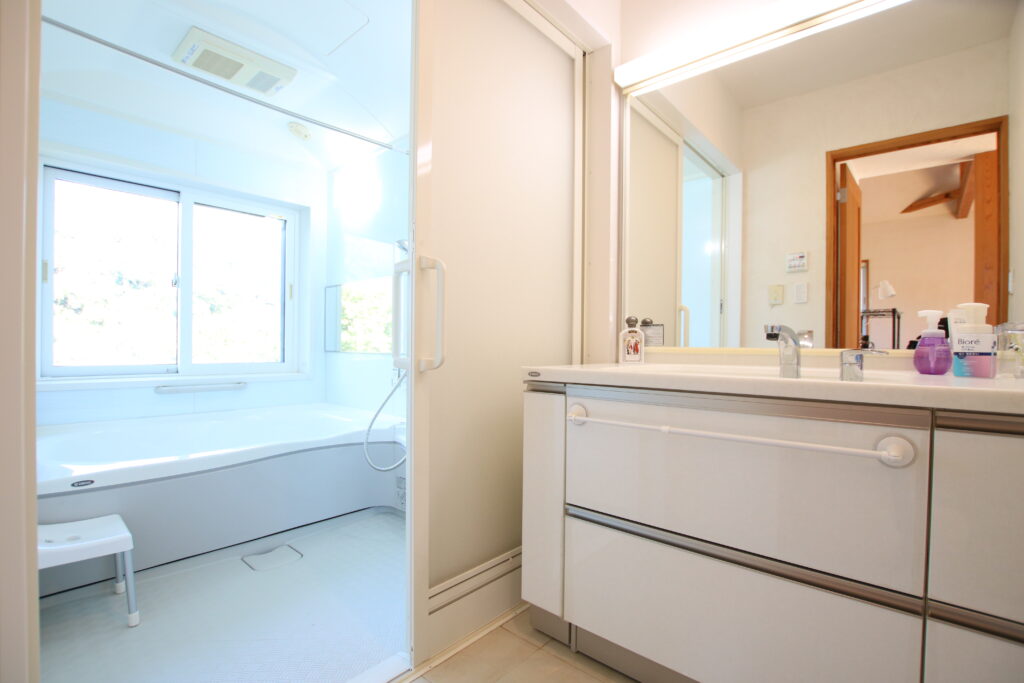 また、この住宅の水回りは全てタイル張り仕様となっており、耐久性が高くお掃除も簡単です。清潔感のある仕上がりで、日々快適にお使いいただける空間となっています。