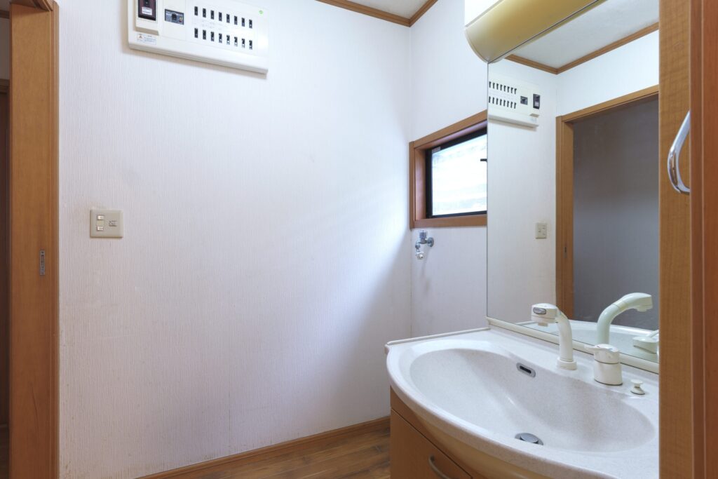 洗濯機をキッチン側に移動したことで、洗面エリアにゆとりが生まれ、より広く使いやすい空間になりました。オープンでおしゃれな造作の洗面台と棚を新設し、機能性とデザイン性を両立。グリーンのタイルをアクセントに取り入れることで、ナチュラルで落ち着いた印象に仕上がっています。朝の身支度も、リラックスしながら気持ちよく行える空間になりました。