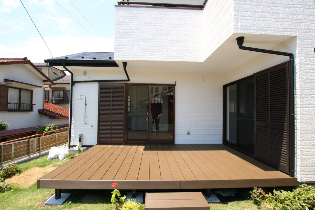 外壁の塗装とウッドデッキを新たに施工しました。南側に広がるお庭へは、リビングと畳スペースの両方から出入りできるつくりに。光があふれる空間に、ご家族の明るい笑い声が響いてくるような、心地よい雰囲気へと生まれ変わりました。